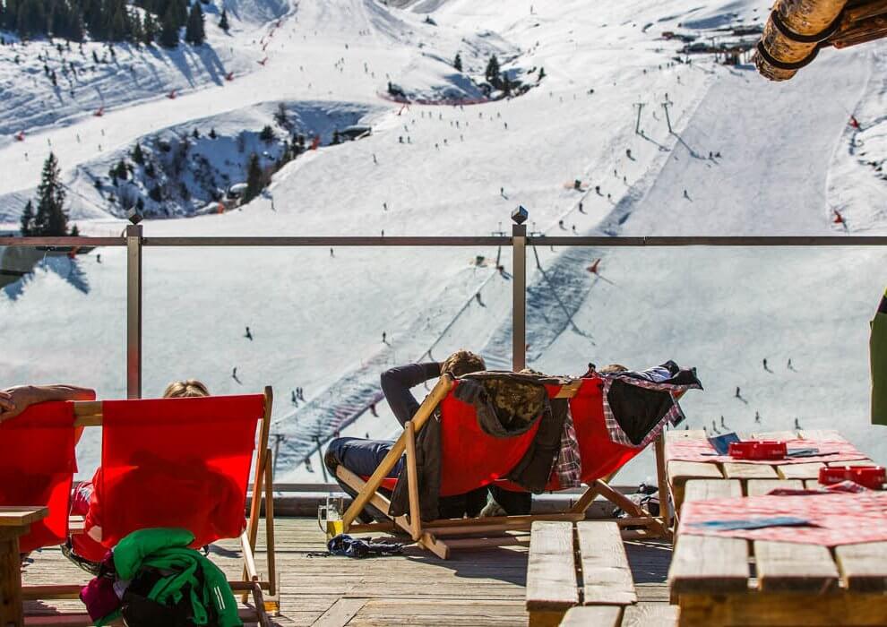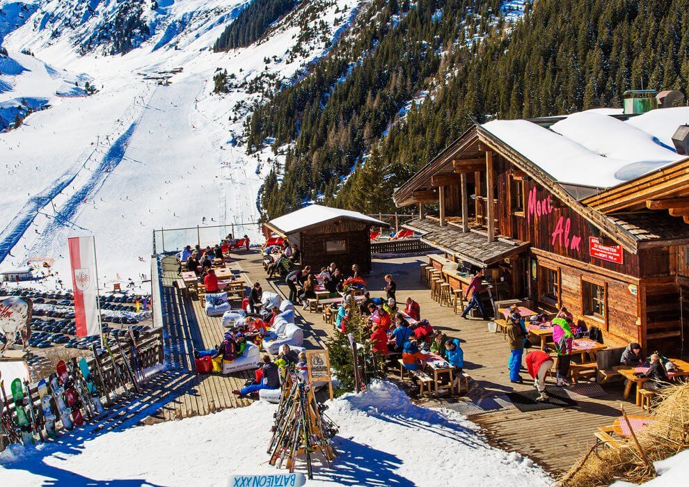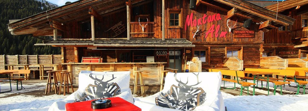 You don't have to go far to get to the Montana Alm when stopping for a break. Located directly on the ski slope, the friendly Montana team provides exhausted one- and two-boarders with regional delicacies, juicy meat specialties and crunchy salads - daily from 11 a.m. to around midnight.