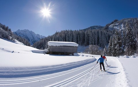 Auf ausgiebigen 1.500 Metern führt die Höhenlanglaufloipe durch die Zillertaler Alpen. Ganz klassisch oder im Skate-Stil kann man hier unbeschwert durch die verschneite Winterwelt gleiten.