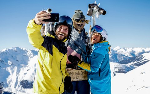 Ein Bild von einem Pistentag – und man selbst mittendrin. Am Hochfügen Photopoint kann sich jeder freuen, der von unserem vermeintlichen Radargerät geblitzt wird. Denn das Foto vor dem einmaligen Bergpanorama kostet nichts – bis auf ein Lächeln. Was man dafür tun muss? Erst den Skipass an den Sensor halten, dann einfach eine gute Figur machen. Das Pistenerlebnis kann man nach der Registrierung jederzeit kostenlos downloaden.