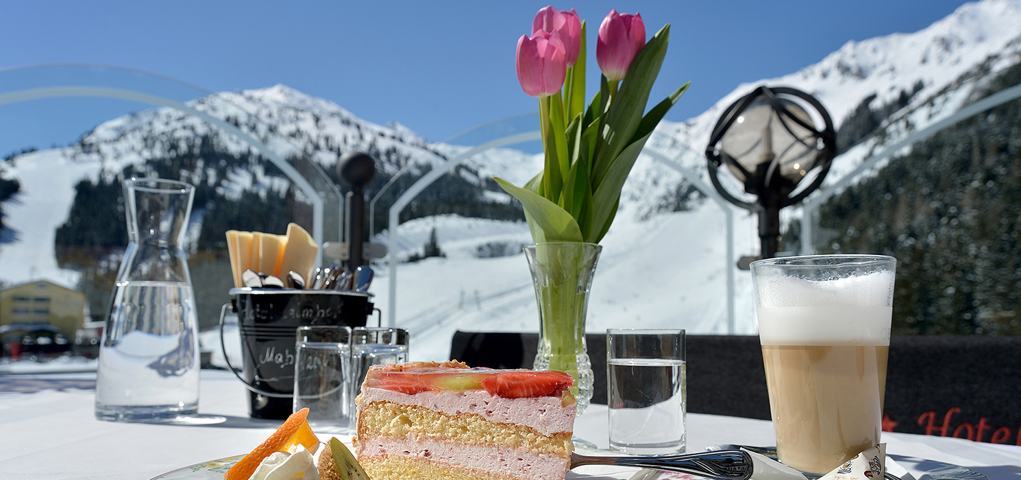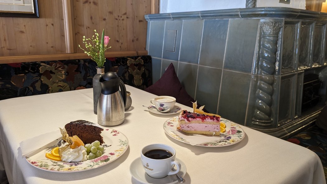 Auch die hausgemachten Kuchen und Torten kann man sich – begleitet von köstlichem Kaffee – schmecken lassen. Zum Beispiel auf der angrenzenden Sonnenterrasse mit imposantem Bergblick-Panorama. Tief durchatmen, entspannt zurücklehnen und sich einfach mal verwöhnen lassen! Oder wie wäre es mal mit selbstgebackenem Brot?