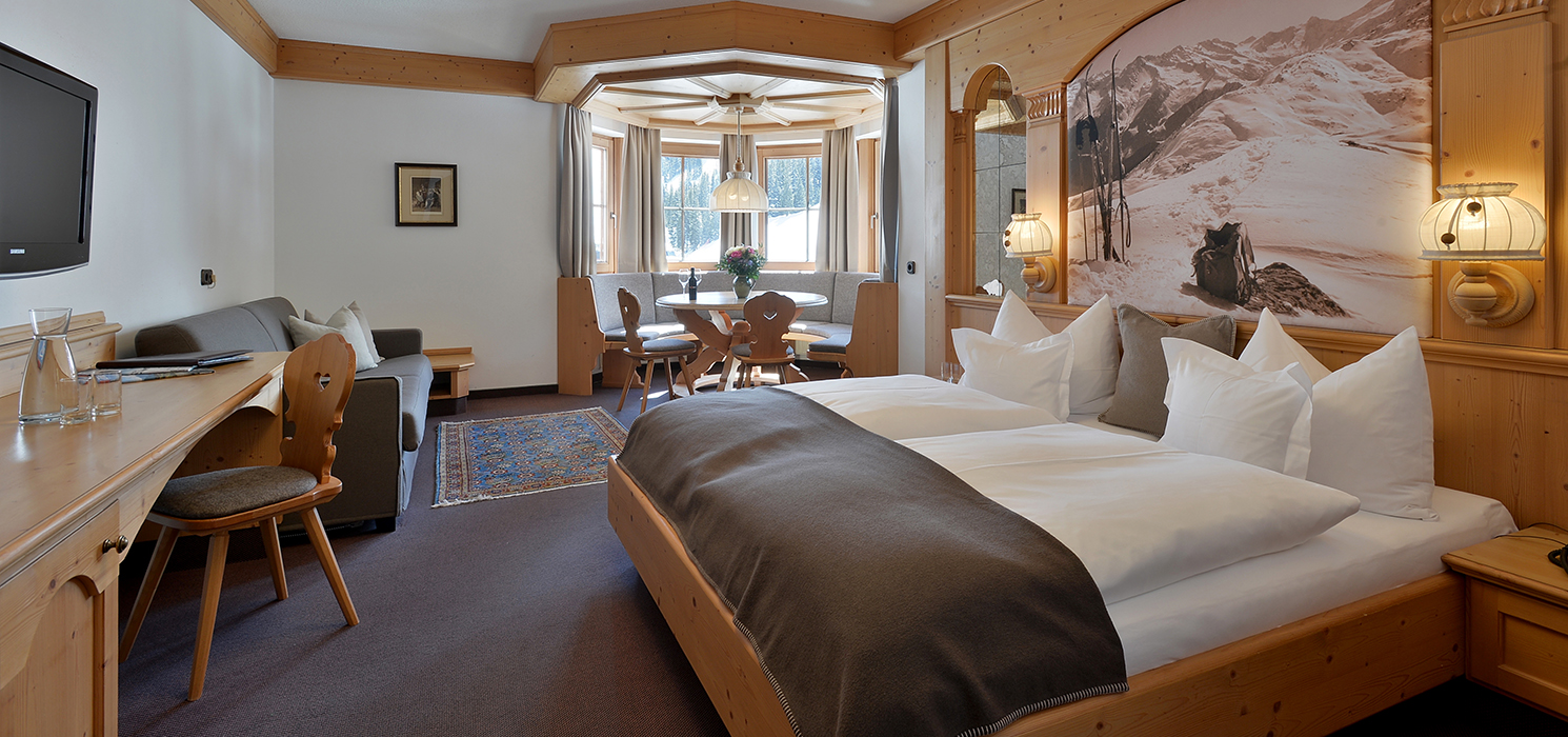 Unsere Juniorsuiten bzw. Familienzimmer bieten Ihnen ein großzügig gestaltetes Wohn-Schlafzimmer mit Sofa, TV, Radio, Zimmersafe, Telefon und Balkon oder Terrasse. Das Badezimmer ist mit Badewanne oder Dusche und Föhn ausgestattet, teilweise mit getrennten WC.