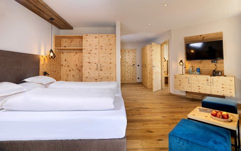 Mit ca. 50 m² bietet unsere Panorama Mountain Suite großzügigen Raum für Ihr Zuhause auf Zeit. Die neuen Suiten begeistern mit moderner Einrichtung in Zirbe und Altholz, schönen Stoffen sowie perfekt durchdachten Details, großer Terrasse entlang der ganzen Suite. Wunderschöne Badezimmer – Dusche und WC getrennt. Im abtrennbaren Wohn-Schlafbereich lassen sich gemütliche Stunden verbringen und immer mit dem Fokus auf die traumhafte Bergkulisse.