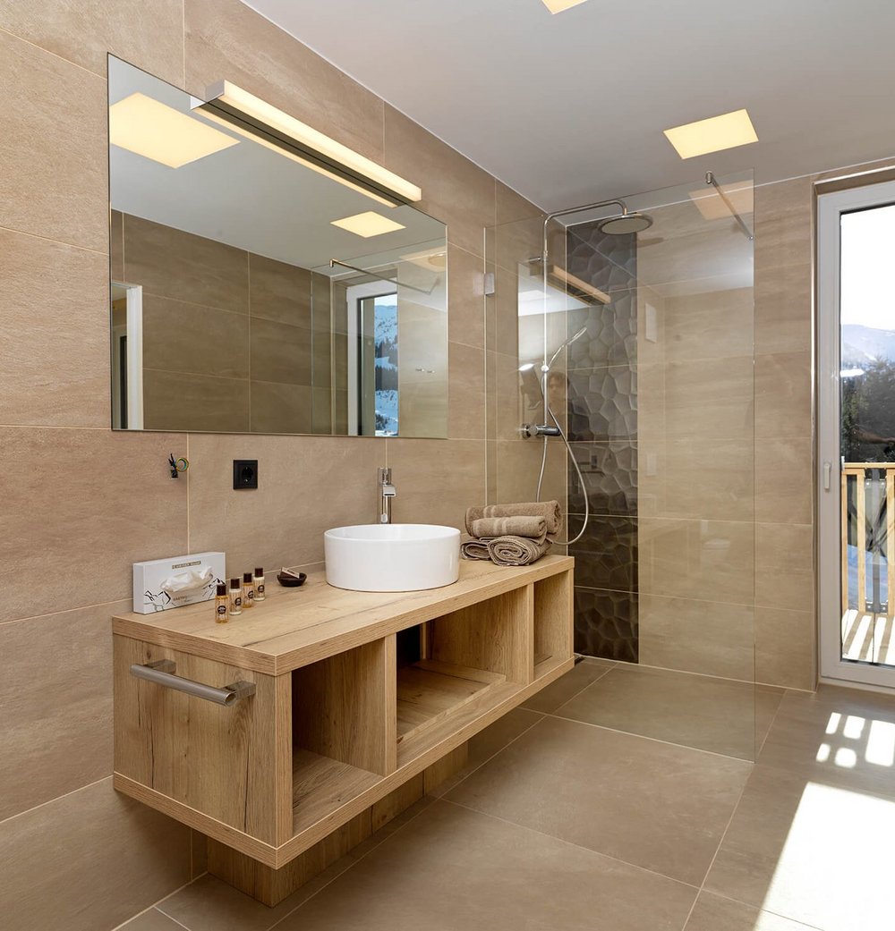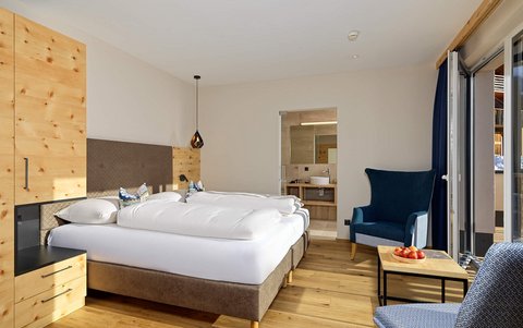 Mit ca. 28 m² bietet unsere Panorama Mountain Junior Suite großzügigen Raum für Ihr Zuhause auf Zeit. Diese neuen Suiten begeistern mit moderner Einrichtung in Zirbe und Altholz, schönen Stoffen sowie perfekt durchdachten Details. Teilweise große Terrasse entlang der ganzen Suite. Wunderschöne Badezimmer – Dusche und WC. Hier lassen sich gemütliche Stunden verbringen und immer mit dem Fokus auf die traumhafte Bergkulisse.